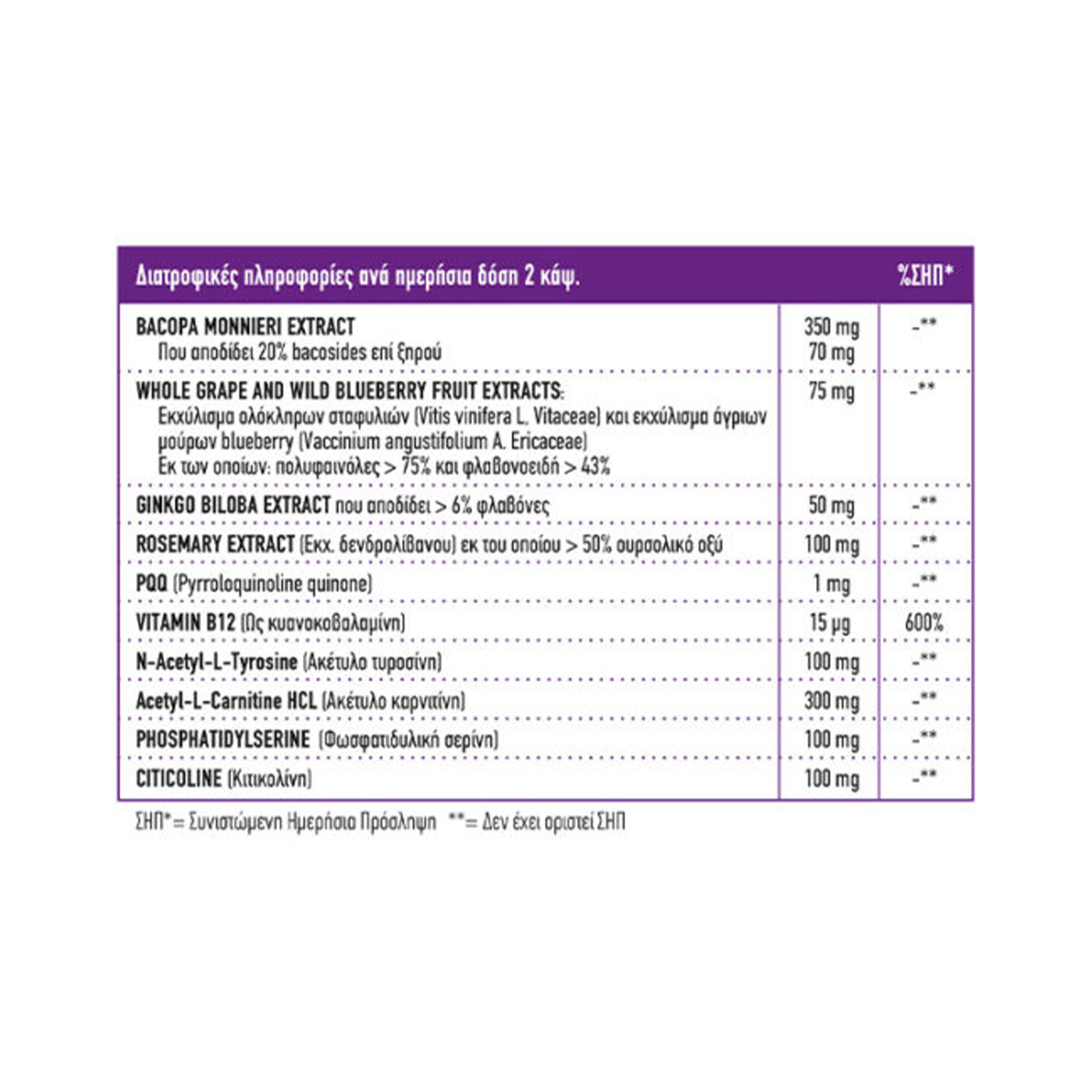 | Εκχύλισμα Bacopa Monnieri (Που αποδίδει 20% bacosides επί ξηρού) | 350 mg | ** |