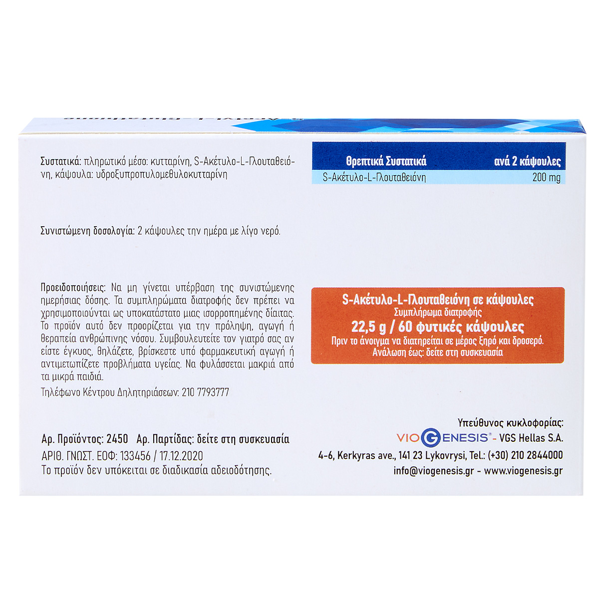 | S-Ακέτυλο-L-Γλουταθειόνη | 200 mg | 26666 mg |