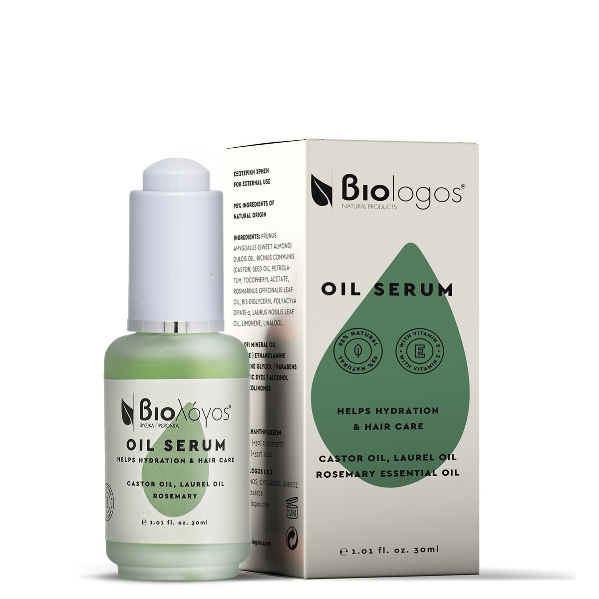 Serum με ενεργά συστατικά Δαφνέλαιο, Καστορέλαιο και Αιθέριο Έλαιο Δεντρολίβανου: