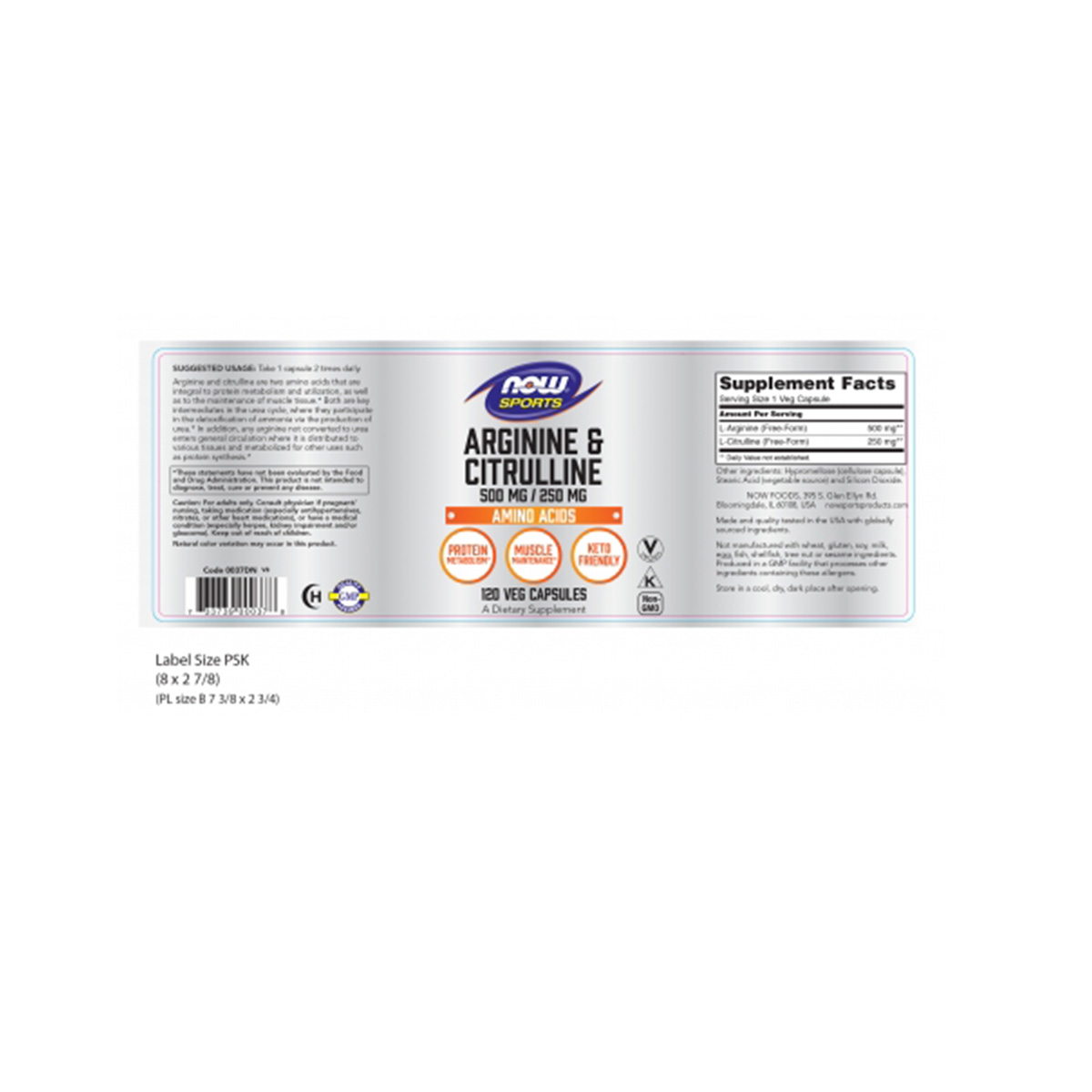Το σκεύασμα Arginine & Citrulline της NOW Sports περιέχει τα εν λόγω αμινοξέα σε ελεύθερη μορφή, αυξάνοντας τη βιοδιαθεσιμότητά τους και την καλύτερη απορρόφησή τους από τον οργανισμό.