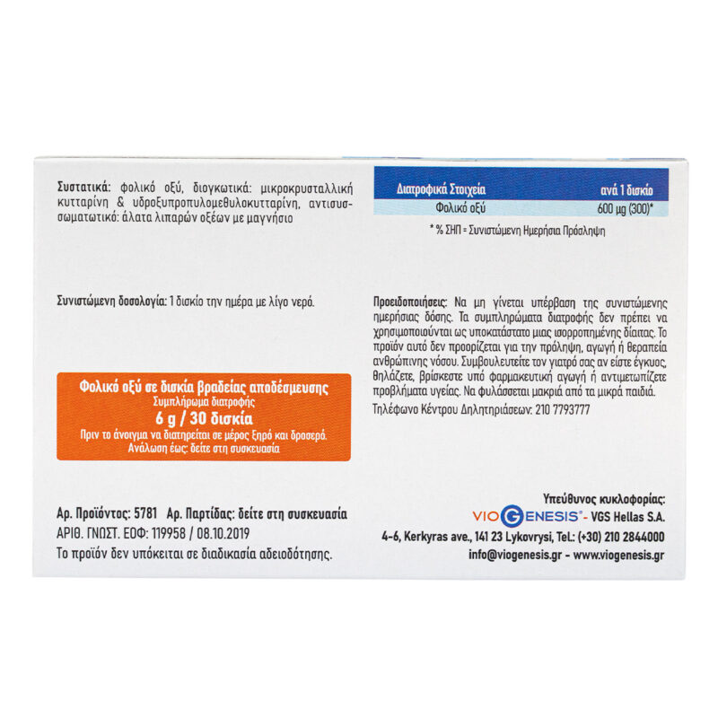 Φυλλικό οξύ, Folic Acid της Viogenesis σε δισκία βραδείας αποδεύσμευσης Βασικό συστατικό για την γρήγορη και σωστή κυτταρική αναπαραγωγή και ανάπτυξη. Απαραίτητο για την παραγωγή ερυθρών αιμοσφαιρίων, την εγκυμοσύνη και δρα προληπτικά ως προς την αναιμία.