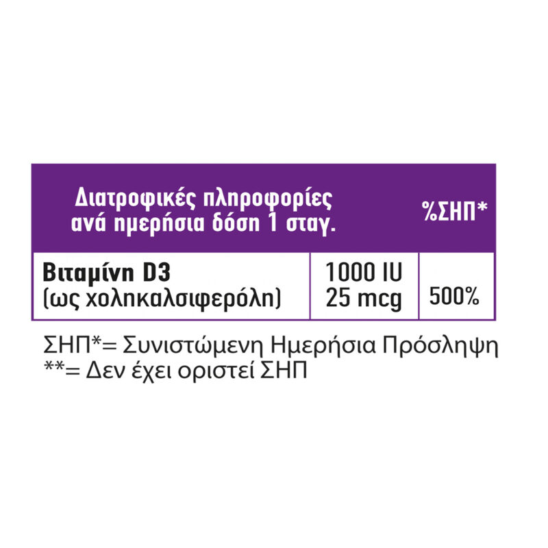 Οδηγίες λήψης: 1 σταγόνα αποδίδει 1000 IU της βιταμίνης D3